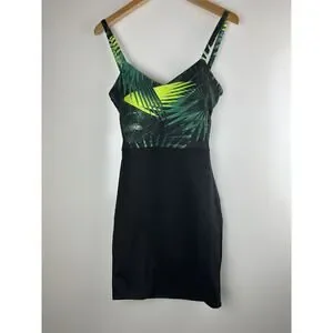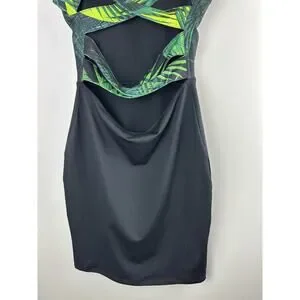 NWT Fabletics Malindi Criss Cross Cut Out Strappy Dress Green Black Leaves Small