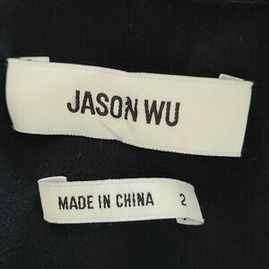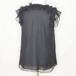 Jason Wu black ruffle silk blouse. Rippling ruffles cascade down the front of this lithe silk blouse. Split neck with ties. Sleeveless. Excellent preowned condition.