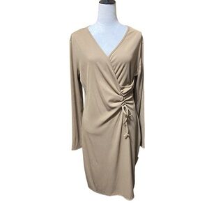This elegant tan wrap dress is perfect for any occasion. Its sophisticated design and comfortable fit make it a must-have in your wardrobe.