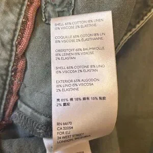 The Anthropologie Women's The Wanderer Green Patch Bohemian Camo Pocket Pants are a stylish and versatile addition to any wardrobe. These pants feature a unique floral pattern in shades of green, with a bohemian camo patch adding a trendy touch. Made from a blend of spandex, viscose, linen, and cotton, these pants are lightweight and comfortable, perfect for all-day wear. The straight leg style and high rise make them flattering and on-trend, while the chino style adds a classic finish. With convenient pockets and a relaxed fit, these pants are ideal for embracing the hippie and army-inspired themes in your fashion choices. 32" Waist. 29" Inseam. 12" Rise. No flaws!