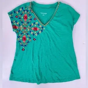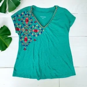 SOFT SURROUNDINGS Passion Flower Sequin Tee Parakeet large