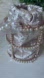 Pearl-Embellished Cream Basket or Bag with handle and removable lining.