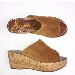 Stylish brown suede wedges. Cork platform. Slip-on design. Super cute but they say 8.5 but fit more like a size 8 so have to reposh them!! Otherwise was happy with them!
