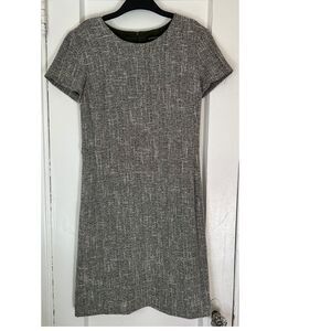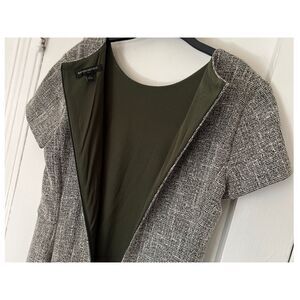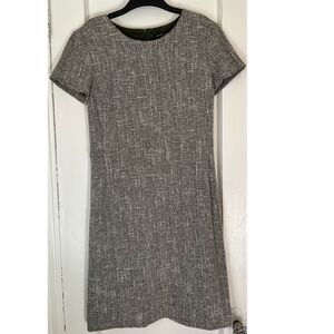 BANANA REPUBLIC DRESS Size 2 DARK GREEN WHITE BOUCLE STRETCH KNIT CAP SLEEVE SHEATH