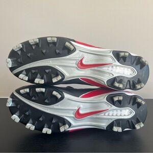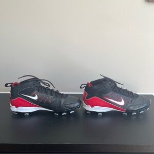 Nike Men's Power Channel Cleats in size Men’s 11.5. These football cleats feature a black, red, and white color scheme. This model is from 2008 however they are in very good condition with only normal signs of use. No tears or damage. Integrity is intact. Lining is comfortable, smooth, and intact. Nice high quality, durable, and reliable cleats.