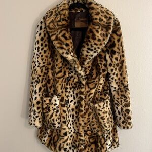 GUESS SIZE S/CH/P Elevate your style with this chic leopard print teddy jacket. Its plush design offers both warmth and fashion-forward flair. Double breasted. New with no tags. Extra button. Warm & soft.