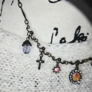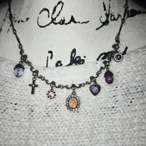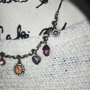 This beautiful Avon necklace features a variety of colorful pendants, perfect for adding a touch of charm to any outfit. The intricate design showcases pink, purple, and orange accents, making it a versatile accessory for any occasion.