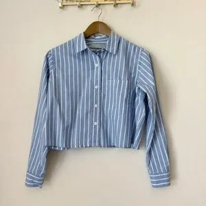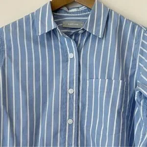Everlane The Way-Short Striped Shirt XXS Silky Cotton Mariner Blue