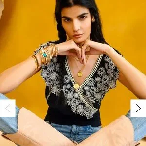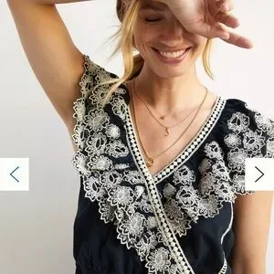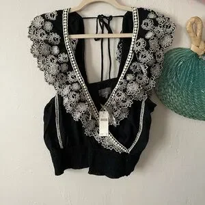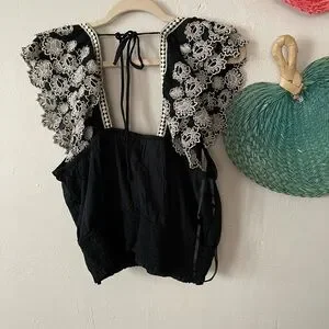 No jacket? No problem. With lovely lace ruffles, thoughtful embroidered touches, and an open-tie back, this tank inspires you to leave the extra layer at home.