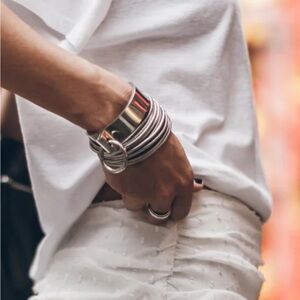 Large Set of silver bangles. Photos to show styling. These are likely South African Véndala bangles or Indian bangles. Likely silver, but unknown. Approx 6cm. Ask any questions. Last photo is actual set you will receive. Ask any questions. Bundle with other items for best pricing.