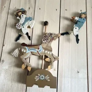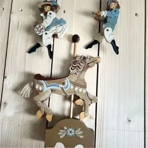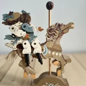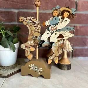 Jig Saw Puzzle Style Vintage Figurine Immerse yourself in the whimsical world of folk art with the LILLIAN RENKO BLEDOW Signed Hand-Painted and Carved Wooden Carousel Horse, adorned with two girl riders. This exquisite piece showcases meticulous craftsmanship, featuring intricate hand-painted details and carved elements that evoke a sense of nostalgia and charm. The carousel horse, signed by Lillian Renko Bledow, captures the essence of traditional folk art with its vibrant colors and playful design. Perfect as a centerpiece for your home decor or as a cherished collectible, this piece celebrates the joy and craftsmanship of carousel artistry, making it a standout addition to any art enthusiast's collection.