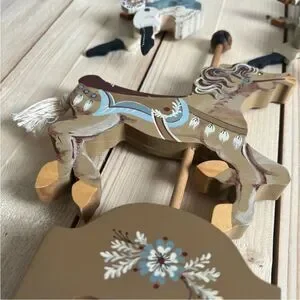 Vintage Signed Folk Art Hand Painted Carved Wooden Carousel Horse Jig Saw Puzzle
