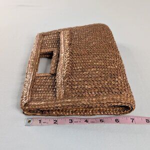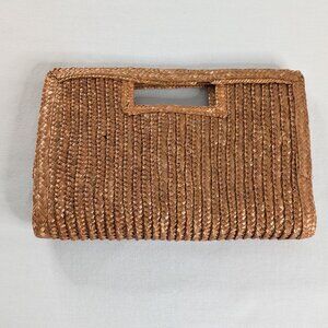 VTG Tan Woven Top Handle Front Pocket Claps Closure Clutch Bag