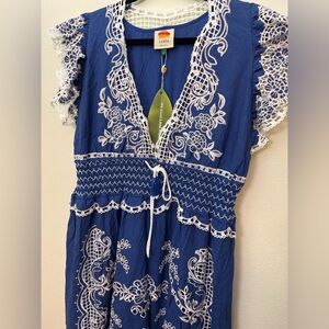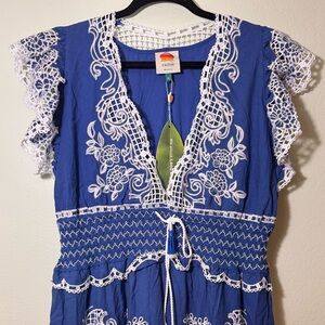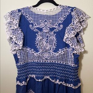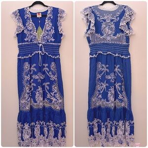 Farm Rio Blue Romantic Richelieu Maxi Dress