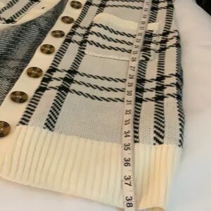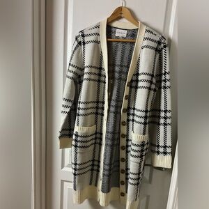 Stylish plaid cardigan with button front. Cozy and chic design. Ideal for layering.