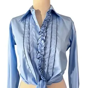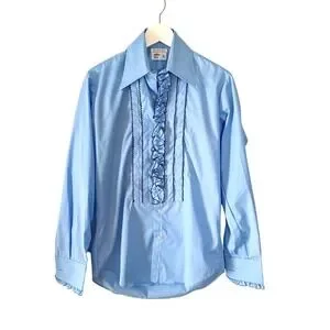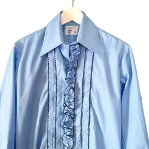 Vintage 1970s After Six Ruffled Light Blue Unisex Vampirecore Shirt