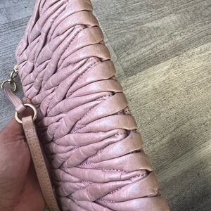 Elegant Miu Miu with quilted design. Blush pink leather. Perfect for versatile styling.