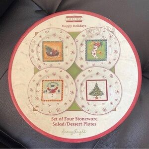 Set of four (4) Sakura Happy Holidays Gracey Knight Stoneware 8 1/4” salad & dessert plates.