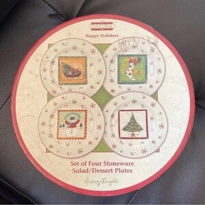NIB Set of Four 8 1/4” Sakura Christmas Happy Holidays salad or dessert plates