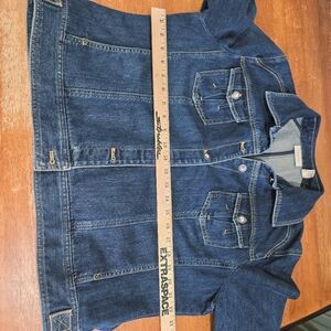 Chicos Denim Jacket with Rhinestone Button Details Size 3 (XL)