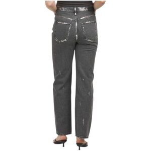 waist rise: 11.5in, metallic accents, vintage look