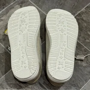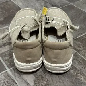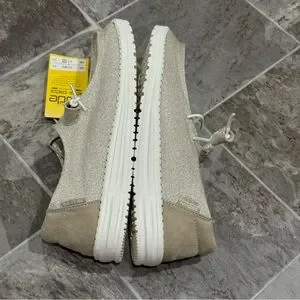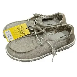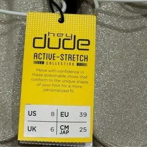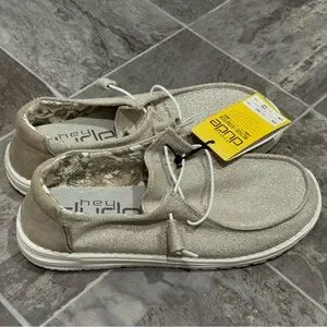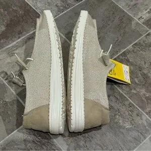 Hey Dude Women 8 Wendy Sparkling Beige Slip On Loafers Stretch Metallic
