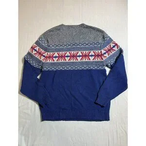 Vintage Sears Roebuck & Co blue Crewneck Holiday sweater red snowflakes Mens L