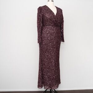 Mac Duggal. Puff Shoulder Sequined Surplice Gown.