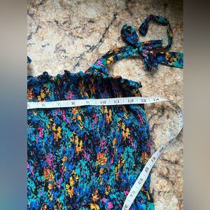 Embrace elegance with this stunning floral maxi dress. Featuring a vibrant mix of blue, yellow, and orange hues, this dress is perfect for any occasion. The colorful design adds a touch of sophistication to your wardrobe.