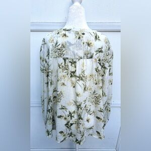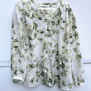 Rose + Olive Blouse Top Women L Floral Button Up Gauzy Lightweight Coastal