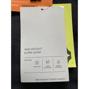 This mid-weight puffer jacket by All In Motion offers a combination of warmth and comfort, featuring a soft, brushed interior and secure hand pockets. The design ensures both style and functionality, ideal for any wardrobe. The jacket's sleek look is complemented by its practical elements, making it a reliable choice.