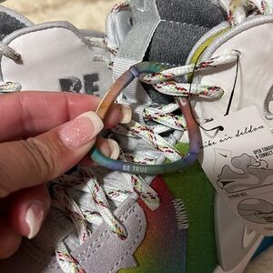 Authentic Sneakers Vibrant multicolor Nike basketball shoes. Features a unique gradient design. BE TRUE