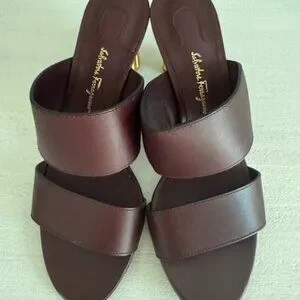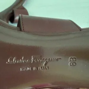 Salvatore Ferragamo Burgundy Sandals with Gold Heel