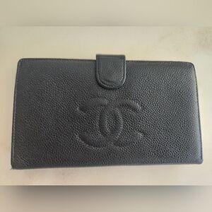 Chanel Black Caviar Continental Wallet With Kiss Lock Coin Purse.