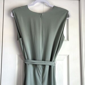 Chic Ralph Lauren sleeveless midi dress in sage green. Features a flowing silhouette with a waist tie.