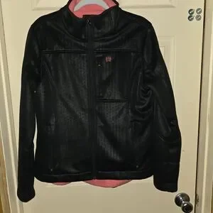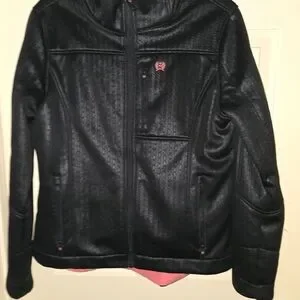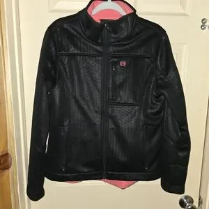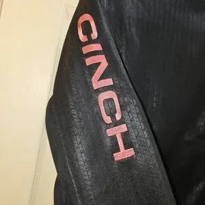 Sleek black jacket featuring pink accents and Cinch branding on the sleeve. Perfect for a stylish look. Cinch Miller Storm Defense Concealed Carry Jacket Women's Large Embossed Black
