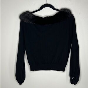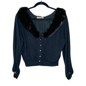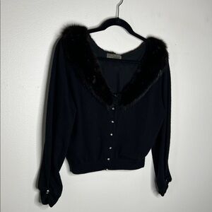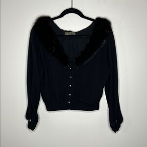Vintage Dalton Cashmere and Fur Black Cardigan