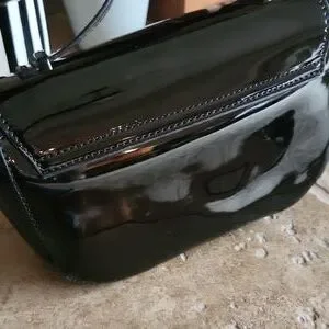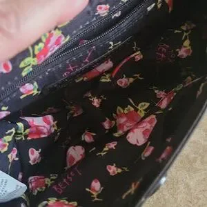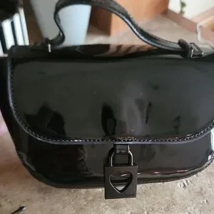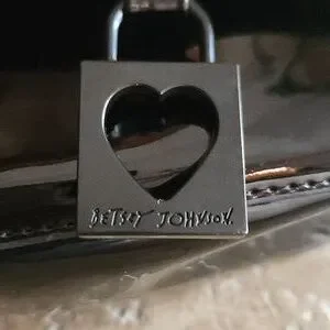 Sleek and stylish black handbag by Betsy Johnson, perfect for any occasion. Features a chic design with a heart-shaped lock detail.