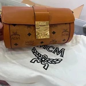 Elevate your style with the MCM Tan Leather Crossbody Bag. This elegant bag features a luxurious tan color and a secure gold clasp, perfect for any occasion.