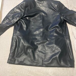 A vegan leather blazer jacket from Abercrombie & Fitch. Only worn a few times but extremely versatile and well suited. I can fit a small but love the oversized look from this blazer. Great to add a little something extra to outfits whether it is to give a little something extra to a business professional outfit or to put it on top of a dress on a night out!