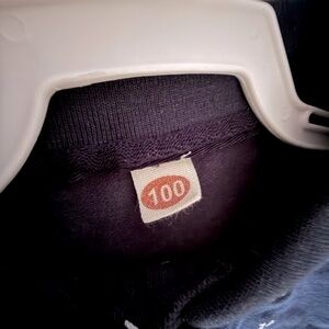 No brand tag, size says 100. In my opinion this fits about as 2T