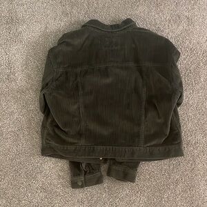 Stylish dark corduroy jacket with button details. Perfect for layering.