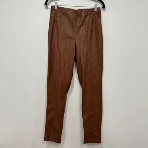 B.YU Italy Womens Faux Leather Pants Medium Camel Skinny Designer Chic Brown