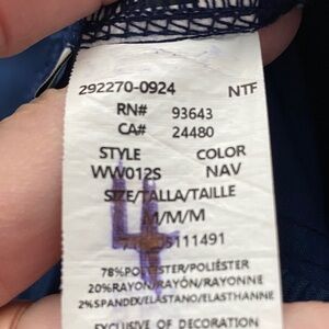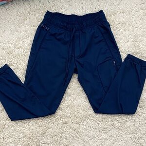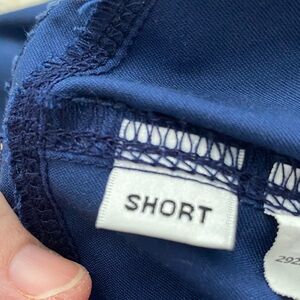 Comfortable navy blue jogger scrub pants men’s size M short , with an elastic waistband and side pocket. These are preowned wore once ( did write the number 4 on the inside tag) my husband is older and not a fan of joggers -says they are for the younger men lol in VGUC