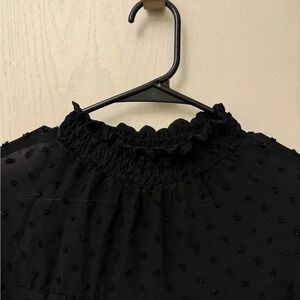 Black High Collar Blouse Sheer Sleeves Business Casual Size M Monteau