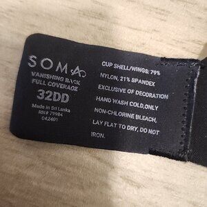 Soma Bra 32DD Vanishing Back Full Coverage Black Underwire