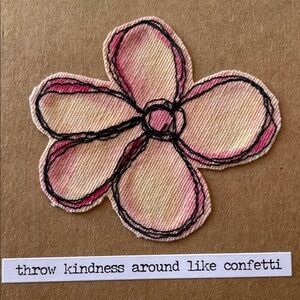 Set of two brown kraft paper greeting cards with free motion embroidery stitched, and watercolor painted flower detail. “Throw kindness around like confetti” text. “Leave a little sparkle wherever you go” text. Blank inside. Perfect for any occasion. New baby, bridal shower, graduate, birthday.