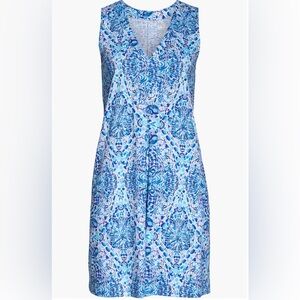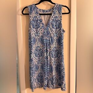 Chic dress with blue and white patterns. Ideal for any occasion.