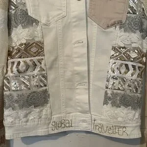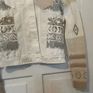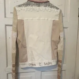 Desigual Women's Artistic Patchwork Jean Jacket - Cream and Gray