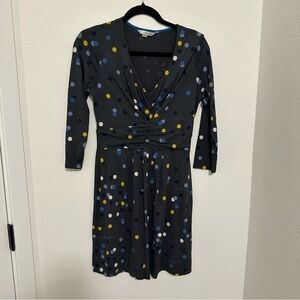 Boden Marion Polka Dot Jersey Dress 3/4 Sleeves V Neck Size 6 Regular